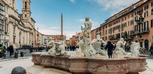27.02.2026: 09:15 – 10:00 ч. полет София - Рим. Пешеходна обиколка „Бароков Рим”: пл. “Навона”, Пантеона (входната такса, която е 5 €, е включена в пакетната цена на екскурзията), фонтана „Треви“, пл. “Испания”. Трансфер. Настаняване в хотела. Нощувка.