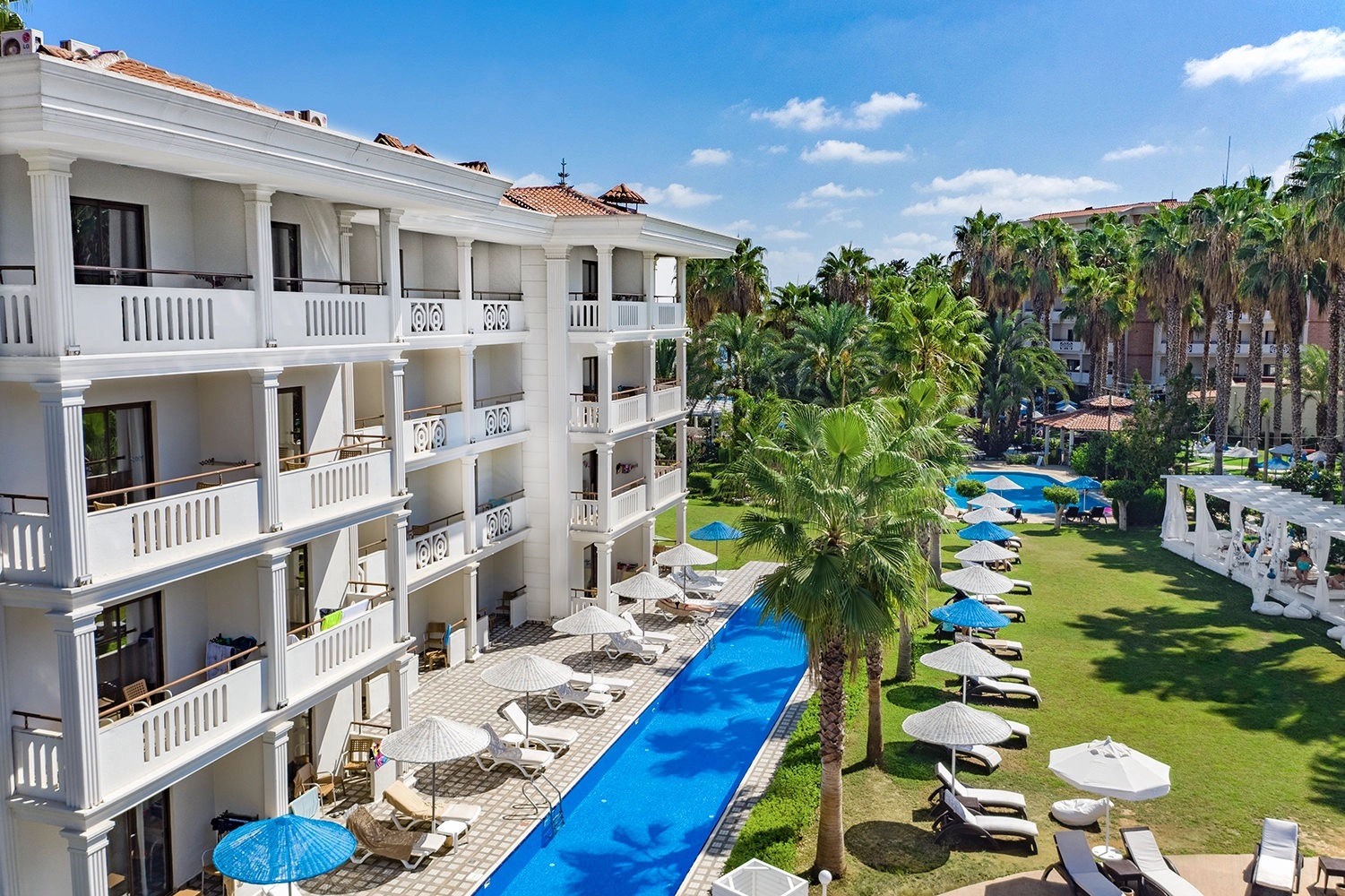 Намира се на 92 км от летище Анталия, на 99 км от центъра на Анталия, на 22 км от центъра на Алания, на брега на морето. Построен 1995 г., на обща площ от 54 000 м2. Реновиран 2021 г.