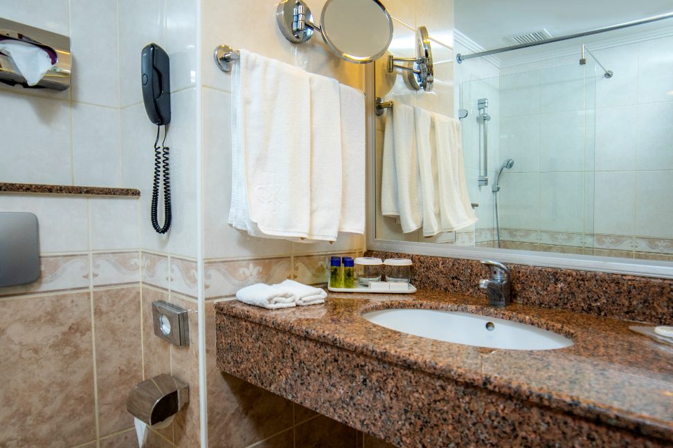 Всички стаи са оборудвани с двойно/две единични или двойно + единично легла, диван, балкон, климатик, телевизор , телефон, баня с душ/вана, сешоар, сет за кафе/чай, минибар (вода, безалкохолни напитки , бира – безплатно), сейф (срещу депозит).