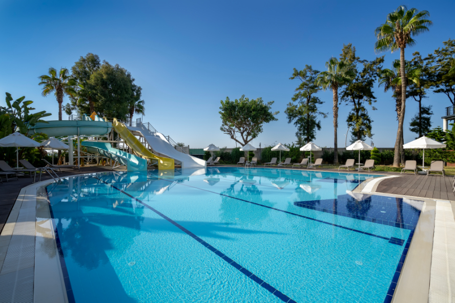Основен ресторант, 1 снек ресторант, 2 а-ла-карт ресторанта (рибен, италиански – 1 безплатно посещение за 7 нощувки, с предварителна резервация), 5 бара, сладоледен бар, сладкарница, открит басейн, 3 водни пързалки, СПА център, амфитеатър библиотека, магазини, паркинг.