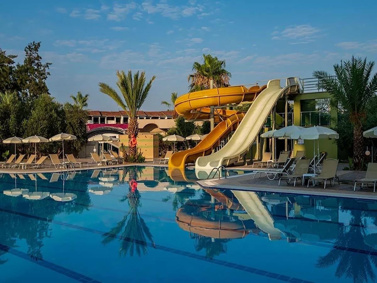 Основен ресторант, 3 бара, 1 открит басейн, 2 водни пързалки, 1 конферентна зала. За децата: Детски басейн, мини клуб (4-12), детска площадка. Безплатни услуги: Сауна, турска баня, фитнес, лека анимация, гимнастика, тенис на маса, дартс, водно полo. Платени услуги: Масаж, фотограф, химическо чистене, магазини, лекар, водни спортове, рент-а-кар, интернет.