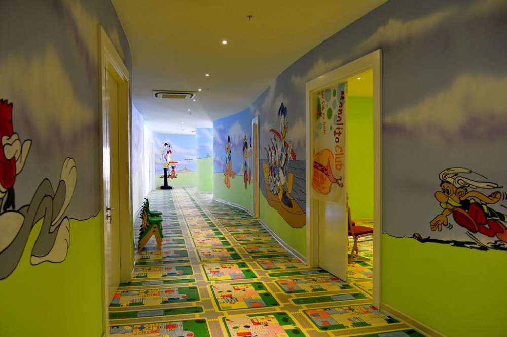 Основен ресторант, 3 а-ла-карт ресторанта (турски, италиански, азиатски – безплатно посещение на един от тях, при минимум 7 нощувки - с предварителна резервация), 5 бара, дискотека, открит и закрит басейн (през зимния сезон), 6 водни пързалки, СПА център, магазини, 3 конферентни зали. ЗА ДЕЦАТА: Детски меню, детски басейн, детска площадка, бейби клуб (0-3г.), мини клуб (4-12г.), мини диско. БЕЗПЛАТНИ УСЛУГИ: Сауна, турска баня, парна баня, фитнес, аеробика, пилатес, тенис на маса, тенис корт, дартс, мини кино, анимация, тематични вечери. ПЛАТЕНИ УСЛУГИ: Масаж, пилинг, фризьор, химическо чистене, лекар, детегледачка, оборудване и осветление за тенис корт, център за игри, билярд, водни спортове, рент - а кар, Wi-Fi интернет. ПЛАЖ: На 150 м. от хотела (минава се през надлез), собствен, пясъчно - чакълест. Чадъри, шезлонги, матраци и плажни кърпи на плажа и при басейна - безплатно.