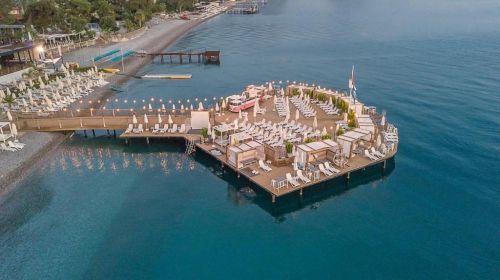 Намира се на 57 км от летище Анталия, на 40 км от центъра на Анталия, на 500 м от центъра на Кемер, на брега на морето. Построен 2018 г., на обща площ от 17 000 м2.
