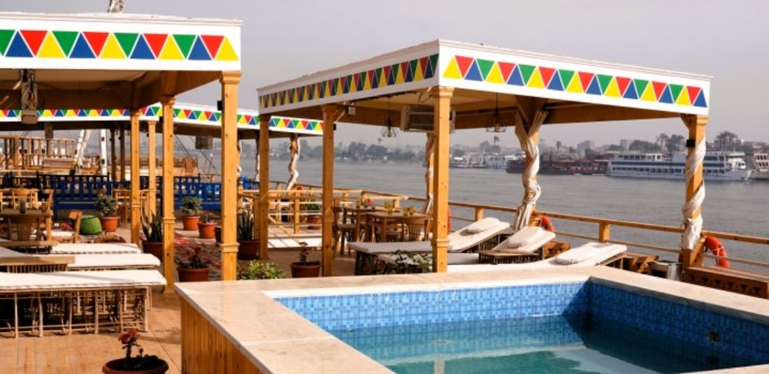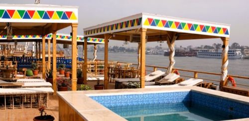 На горната палуба има просторен хол и трапезария. Уютният салон разполага с малка библиотека с книги на английски език за Нил и Египет. С удобните си дивани, това е идеалното място да завършите деня. Споделете истории и преживявания, прочетете книга или играйте табла, докато се наслаждавате на египетско кафе или чаша вино. Централният елемент на този традиционен двумачтов платноход е частично засенчената слънчева палуба. Това е идеалното място да се изтегнете удобно в шезлонг и да наблюдавате как пейзажът се плъзга покрай Вас. Светлината от кристалните лампи и полилеи блести върху дървената слънчева палуба, докато красиво бродирани възглавници, хамак, дивани и шезлонги са разпръснати от двете страни. Засенчената слънчева палуба е чудесно място за релакс под развяващите се бели платна. Докато плавате по Нил, нещо красиво и екзотично винаги успява да привличе погледа ви.