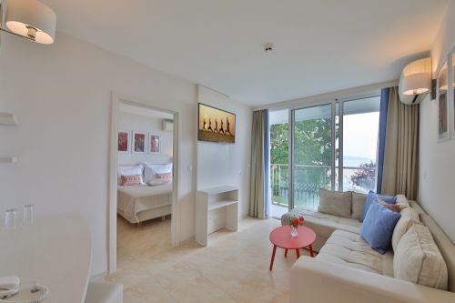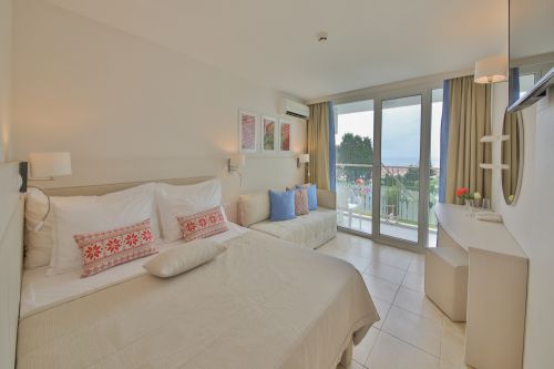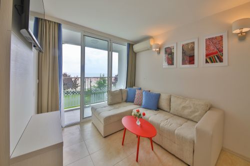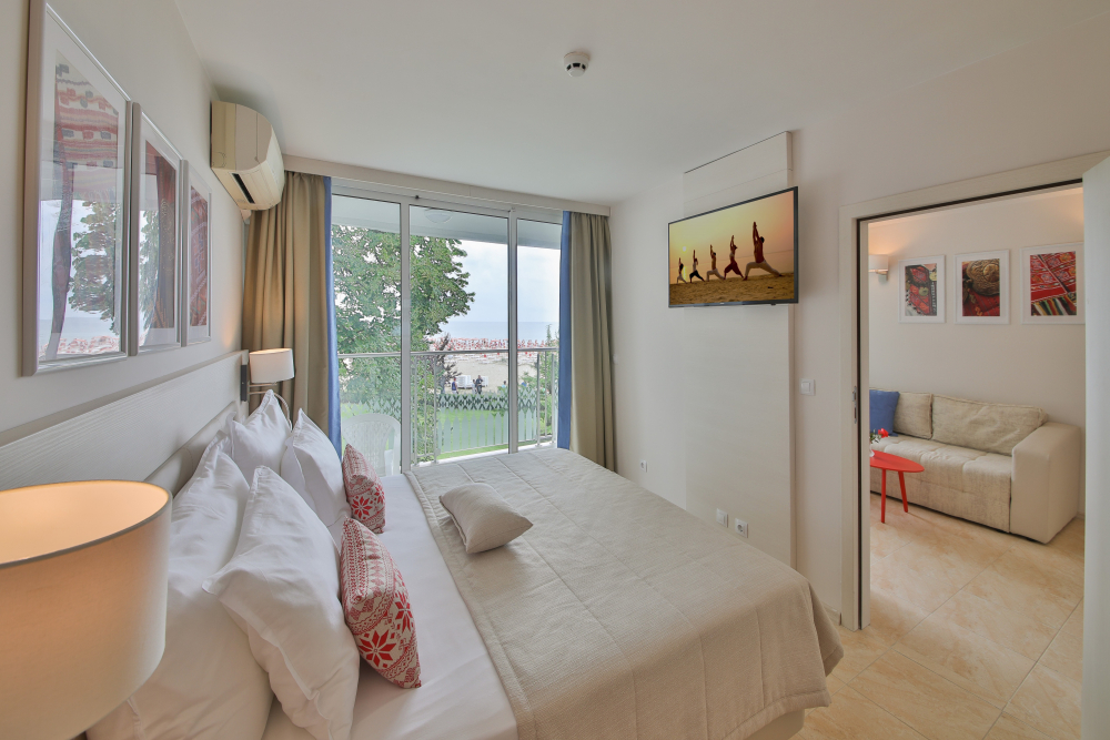 На стая - 1 чадър и 2 шезлонга на плажа от 3-ти ред откъм морето назад са включени в цената /според наличността/