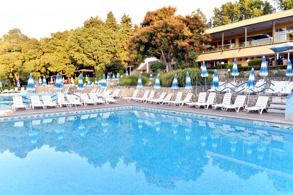 Чадъри и шезлонги около басейна /според наличността/