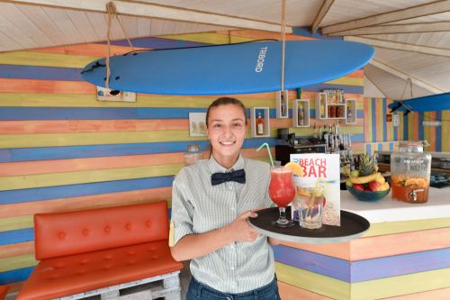 Бар на плажа: / 10:00 - 17:00 ч./ /В разгара на сезона: 09:00 - 18:00 ч./ - минерална вода, местни алкохолни и безалкохолни напитки, освежаващи коктейли, кафе и чай, наливна бира и местно вино. Обслужване на бара.