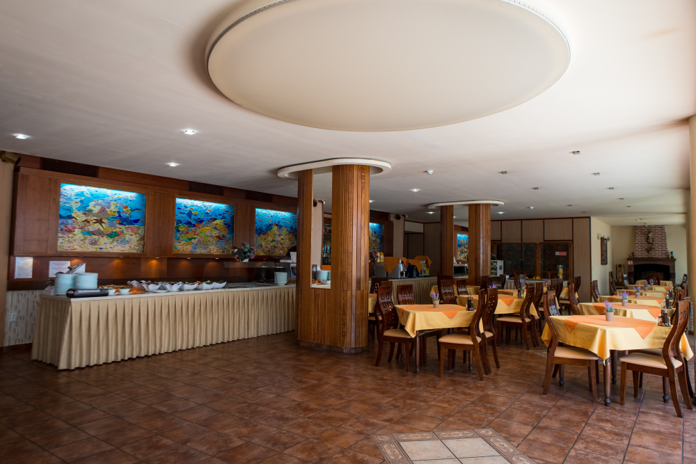 Вечеря на бюфет /19:00 – 21:00/ - разнообразие от топли и студени ястия, разнообразие от млечни продукти, сезонни плодове, ястия от българската и международната кухня