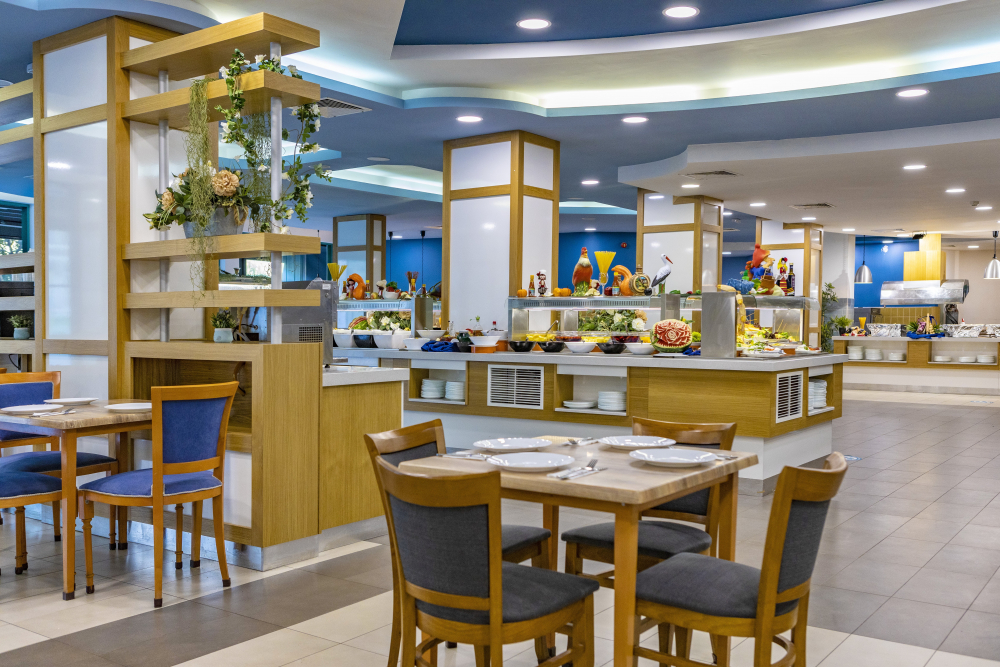 Закуска на бюфет /07:30 - 10:00 ч./ - разнообразие от топли и студени ястия, яйчни специалитети, разнообразни млечни продукти, колбаси и сирена, сладкиши, зърнени храни, плодове, чай, кафе, топло и студено мляко, вода и сокове