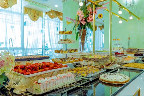 Закуска на бюфет: 07:30-10:00 ч. - Основен ресторант (2-ри етаж) - Прясно изпечени сладкиши и кроасани, омлети, яйчни специалитети, селекция от топли и студени салами и сирена, бюфет със здравословни храни, пресни плодове.