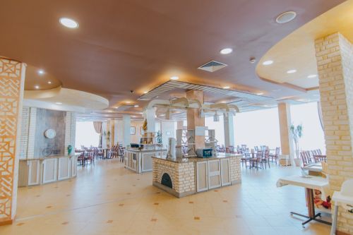 Основен ресторант – блок маса - студен бюфет със свежи салати и предястия, топъл бюфет с предястия и основни ястия, пица, паста, супи, месо и зеленчуци на скара, шоу кукинг; вегетариански бюфет; детски бюфет - бебешка храна/бебешко пюре, бебешки бисквити/; плодове, сладолед и десерти. По-голямата част от десертите са приготвени от майсторите сладкари на хотел Тиара.