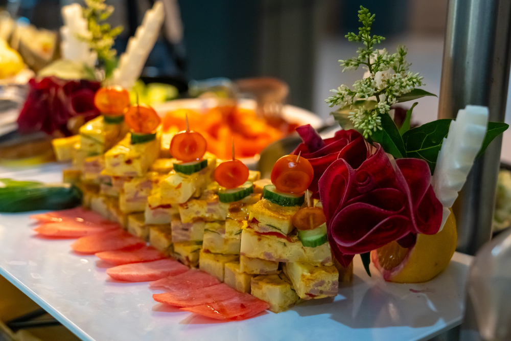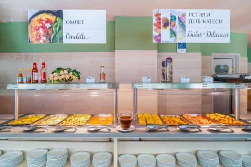 Закуска на бюфет: 07:30-10:00 ч. – със селекция от ястия, пресни плодове и зеленчуци, сладкиши, топли и безалкохолни напитки, вода и освежаващи сокове.