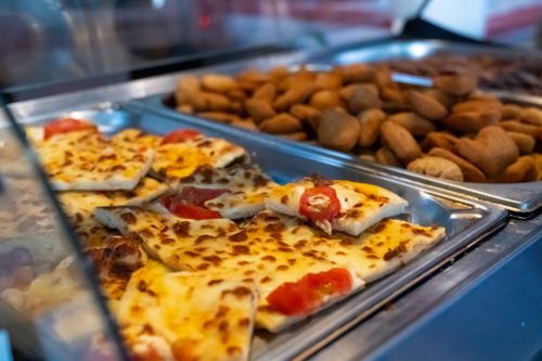 10:00-18:00 ч. - пица, сандвичи, бургери, пържени картофи, сладолед, сладкиши, пресни плодове и зеленчуци