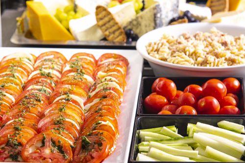 Обяд /12:30 - 14:30 ч./ - на бюфет в основен ресторант - разнообразни топли и студени ястия, разнообразни млечни продукти, сезонни плодове, богато разнообразие от ястия от българската и международната кухня, напитки българско производство (наливни бира, вино, безалкохолни напитки).