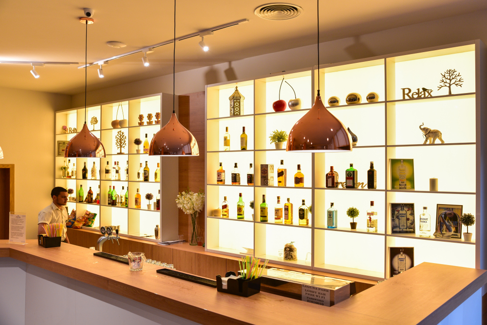 Коктейл бар: 14:00-23:00 ч. - предлага световни марки топли и студени безалкохолни напитки, местни алкохолни напитки и коктейли, местна наливна бира, местно наливно вино и вода, следобед (14:00-18:00 ч.) - сладкиши.