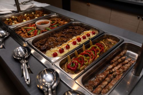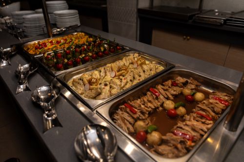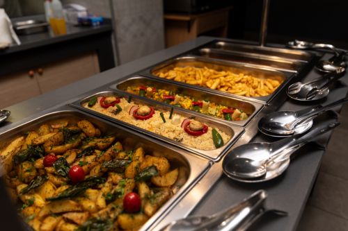 Обяд на бюфет /12:00 - 14:00/ - салати и супи, български и международни ястия, вегетариански и месни ястия, паста, избор от хлебни изделия, десерти, алкохолни и безалкохолни напитки
