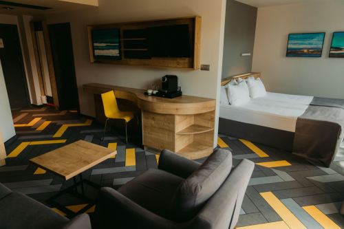 Mини бар в стаята - ежедневно зареждан с минерална вода, безалкохолни напитки, бира, вино, десерт, чипс, желирани бонбони