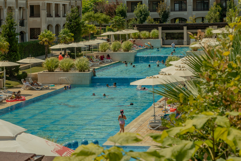 4 открити басейна, шезлонг и чадър около басейните (според наличността)