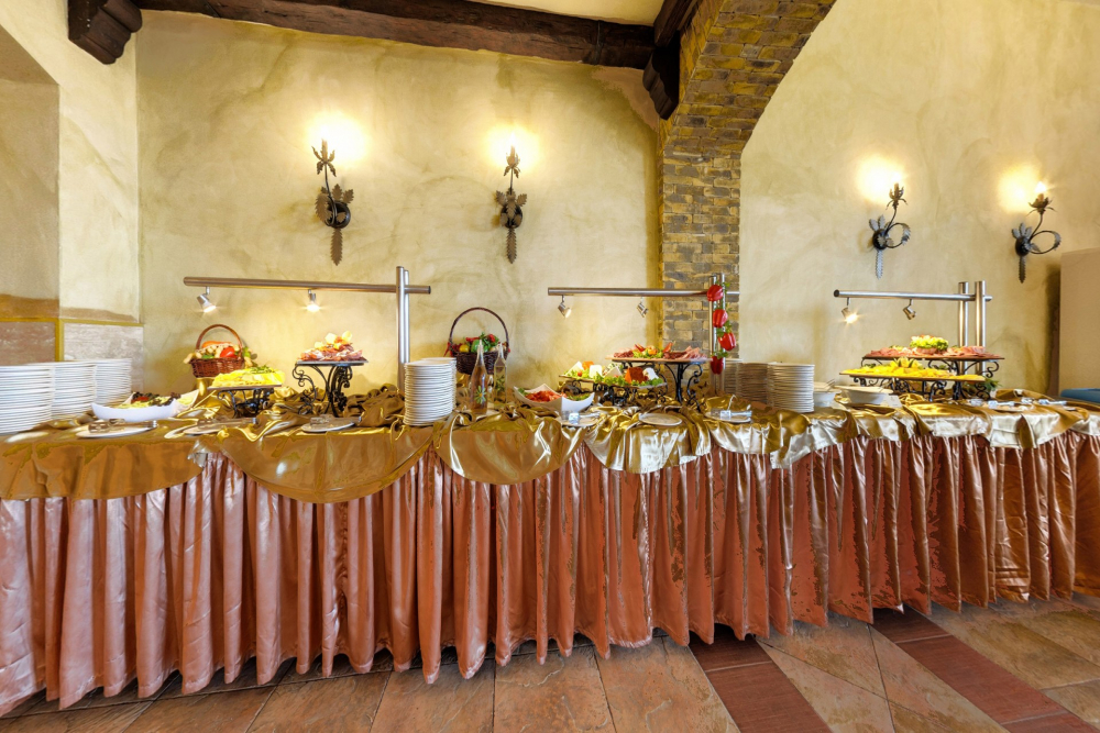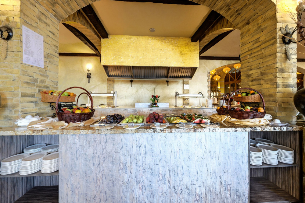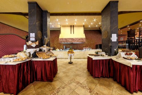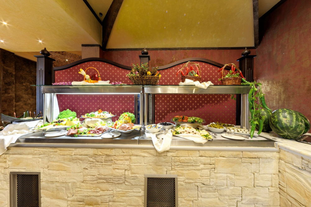 Закуска: 07:30 – 10:00 ч. Бюфет - разнообразие от топли и студени ястия, яйчни специалитети, разнообразни млечни продукти, колбаси и сирена, сладкиши, зърнени храни, плодове, безалкохолни и топли напитки.