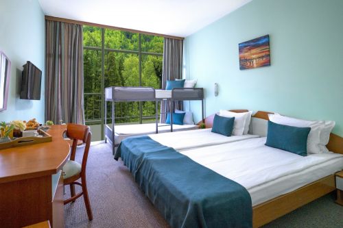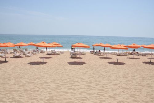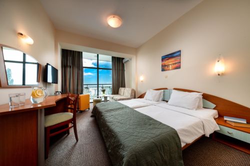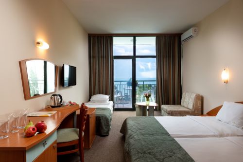 Един чадър и два шезлонга на стая на ПЛАЖА пред хотела (при наличност)