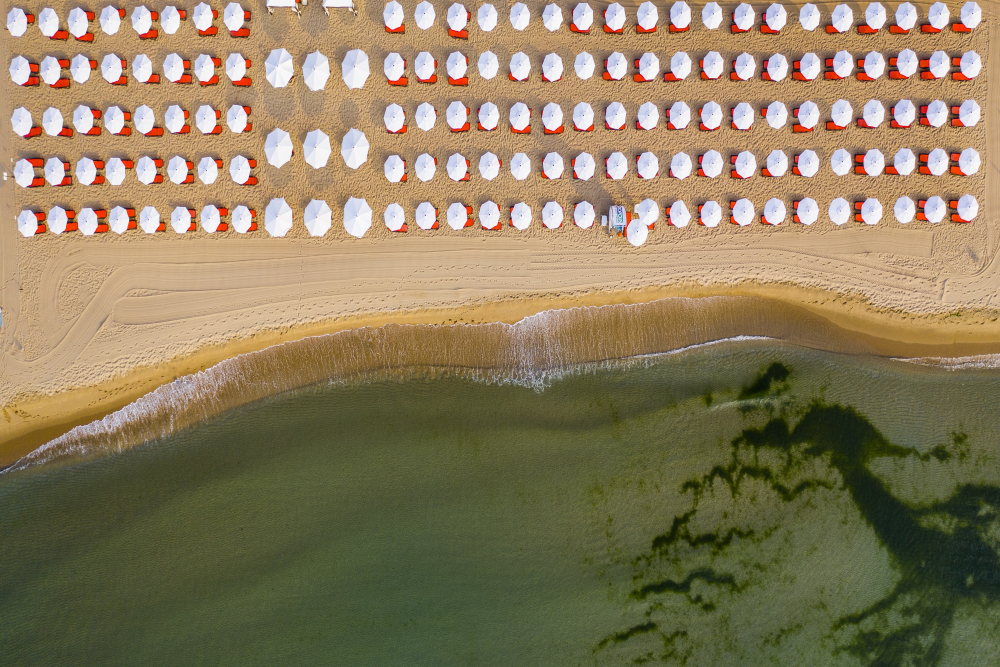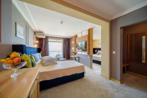 1 чадър и 2 шезлонга на стая на ПЛАЖА (при наличност)