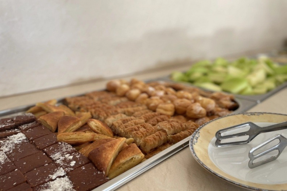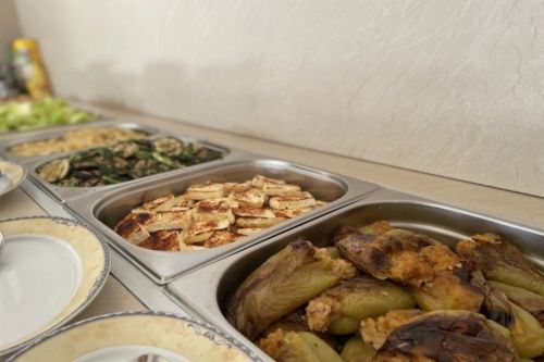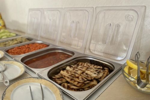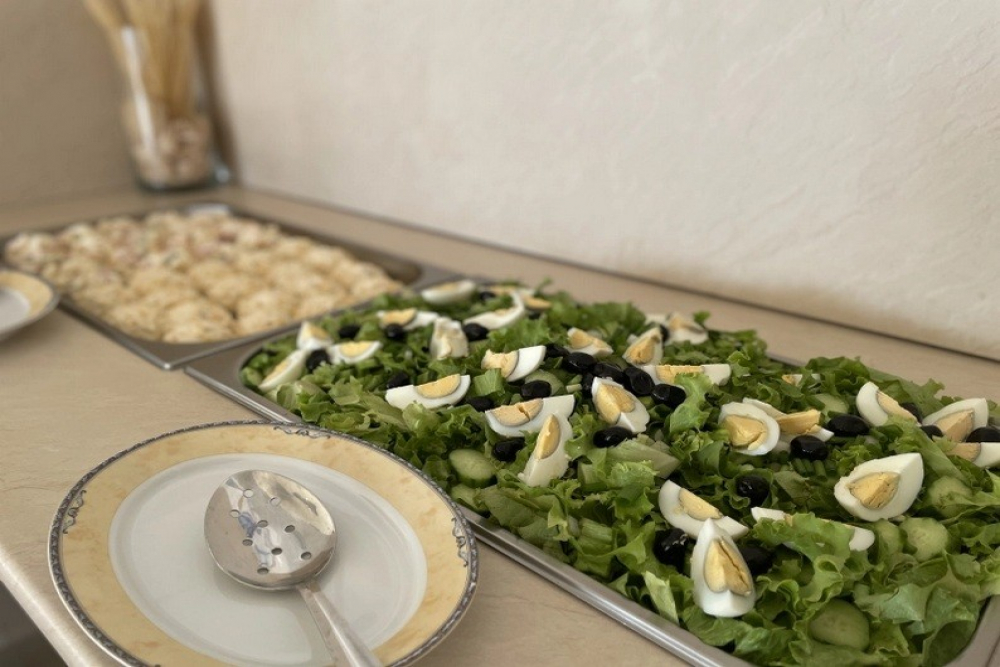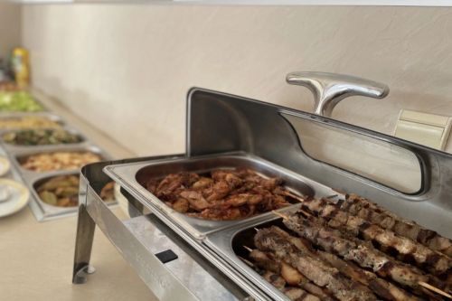 Закуска на бюфет /08:00 – 10:00/ - разнообразие от топли и студени ястия, яйчени специалитети, разнообразие от млечни продукти, колбаси и сирена, селекция от хлебни изделия, зърнени храни, плодове и зеленчуци, студени и топли напитки, безалкохолни напитки и сокове от пост-микс машина. При по-малко от 20 дущи в хотела изхранването е по сет меню.