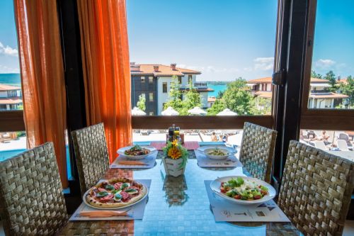 ** В зависимост от заетостта на хотела, храненията могат да бъдат организирани на бюфет или по меню.