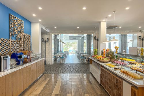 BLUE BAR: / 00:00 - 24:00 ч. / - вносни и местни алкохолни напитки, безалкохолни напитки, коктейли, кафе и чай, наливна бира и вино.