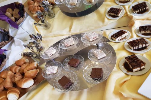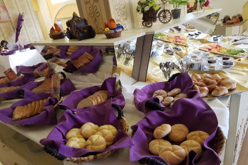 Закуска: 07:30 – 10:00 ч. на блок маса - разнообразни пресни плодове и зеленчуци, сирена, корнфлейкс, кроасани, палачинки, яйца, студени и топли напитки.