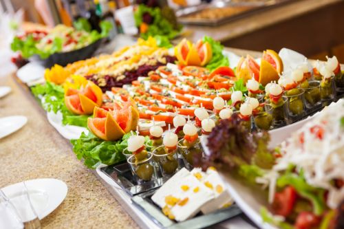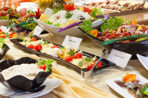 Обяд на бюфет: 12:30-14:00 ч. - разнообразие от топли и студени ястия, разнообразни млечни продукти, сезонни плодове, богато разнообразие от ястия от българската и международната кухня