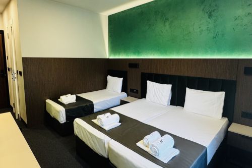 Паркинг: неохраняем, с електронен достъп 10 лв – 5.11 euro на ден , за бус, джип, миниван – 13.70 лв-7.00 euro, за автобус 29.33лв- 15euro на ден, ползва се според наличността. Хотелът си запазва правото да промени цената на паркинга по всяко време.