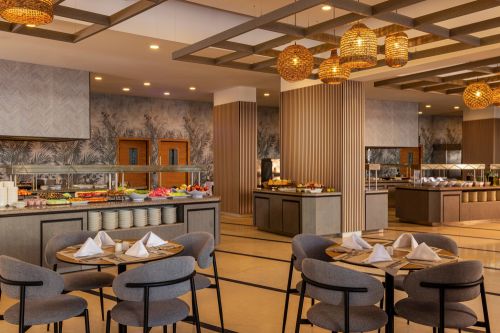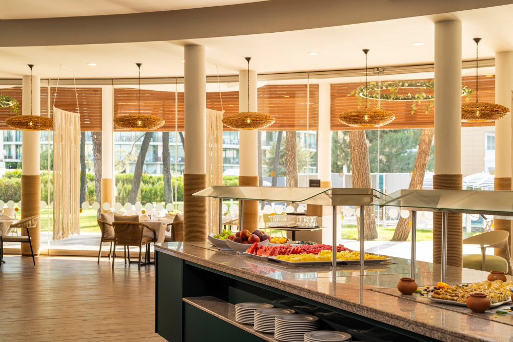 Закуска на бюфет (в ресторант Тера): 08.00-10.00 ч. – топли и студени ястия, яйчени специалитети, разнообразие от млечни продукти, колбаси и сирена, сладкиши, зърнени храни, плодове и зеленчуци и др.