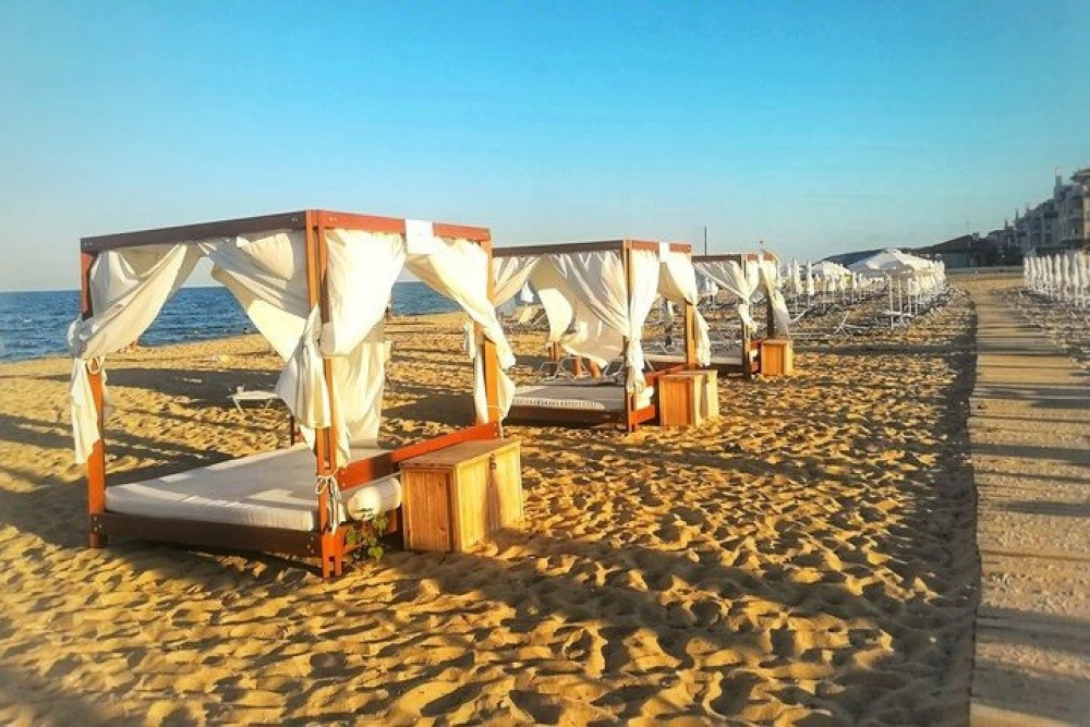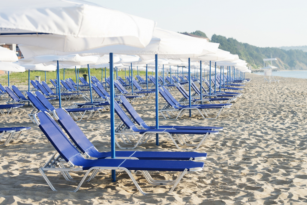 ШЕЗЛОНГИ и ЧАДЪРИ на плажната зона и при басейните БЕЗПЛАТНО и ДО ИЗЧЕРПВАНЕ НА НАЛИЧНОСТТА.