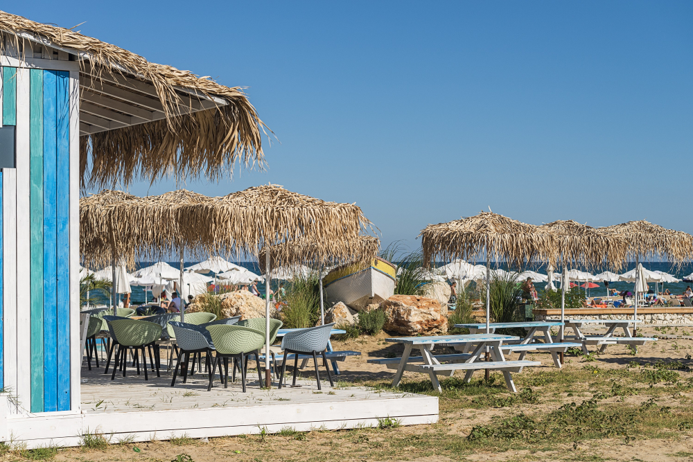 Сънрайз Бийч Бар (плажната зона) от 01.06 до 31.08, 10:00ч. – 18:00ч. – All Inclusive напитки: наливни безалкохолни напитки, наливна бира, разтворимо кафе/чай, минерална (негазирана) вода (на чаша). Избрани коктейли и напитки (10:00ч. – 23:00ч.) – срещу заплащане. Тематични вечери – срещу допълнително заплащане.