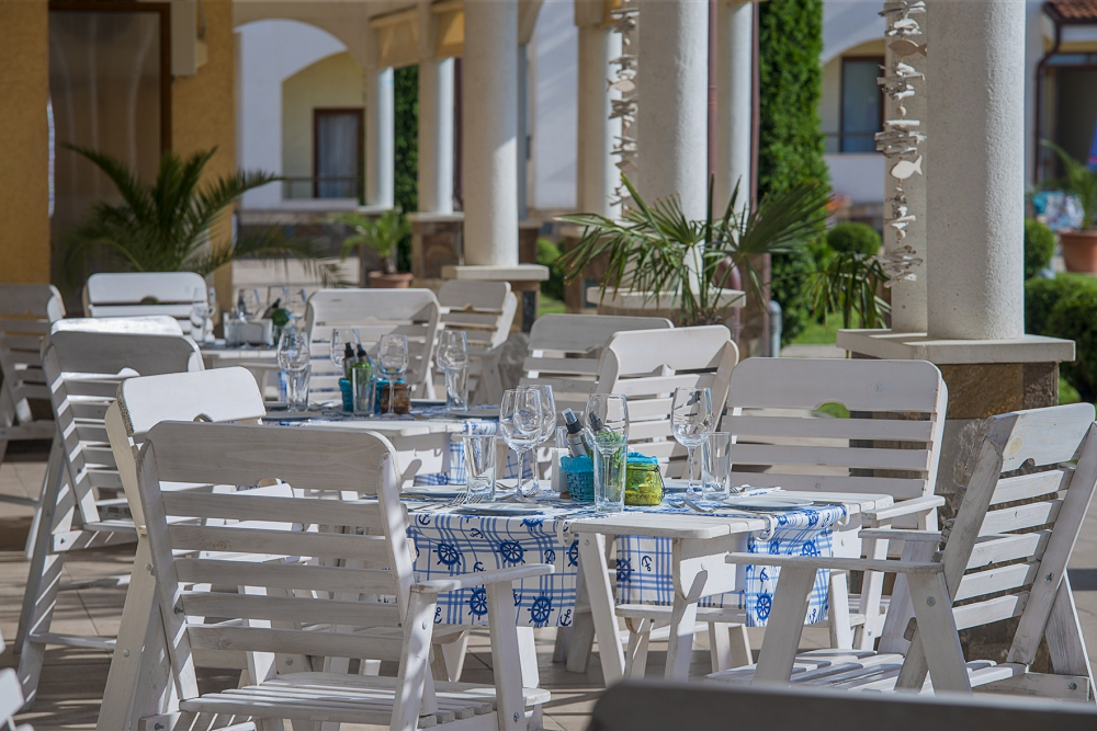 Закуска: В основния ресторант (сграда 2) от 20.05 до 30.09, 07:30ч. – 10:00ч. – Богата закуска на блок маса, включваща шоу кукинг станция. напитки от станция на самообслужване в ресторанта: кафе, разнообразие от чай, мляко, пуншове и сокове, газирана вода /на чаша/.