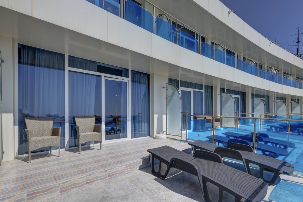 1 чадър и 2 шезлонга на стая на басейна до изчерпване на наличностите
