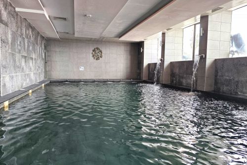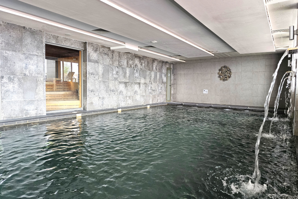 Вътрешен BIO инфинити минерален басейн с натурална минерална вода и много лечебни свойства директно от извора без химически добавки - 38оС на водата с хидромасажни дюзи и водопади