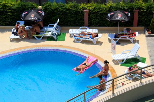 Напитки на бара пред басейна (10:00 - 22:00) - сокове, минерална вода, български алкохол (ракия, водка, мента, мастика, бели и червени вина, наливна бира) и безалкохолни напитки.
