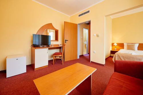 Паркинг: ограничен брой платени паркоместа на цена 6€/ден от 01.06 до 30.09, в близост обществени парко места според тарифата, преди 01.06 и след 30.09 безплатни зони в близост до хотела