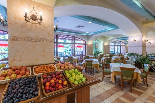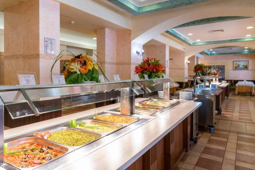 Вечеря на бюфет: 18:00-21:00 ч. – пресни салати, предястия, вегетариански и месни ястия, основни ястия на скара и готвене, паста, селекция от хлебни изделия, сладък бюфет и др.
