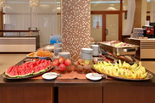 Закуска на бюфет: / 7:30-10:00 ч./ - разнообразие от колбаси, сирена, плодове, десерти, кроасани, палачинки.