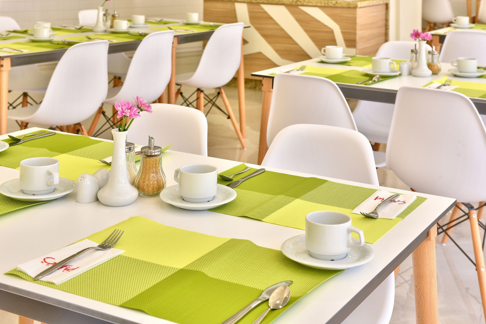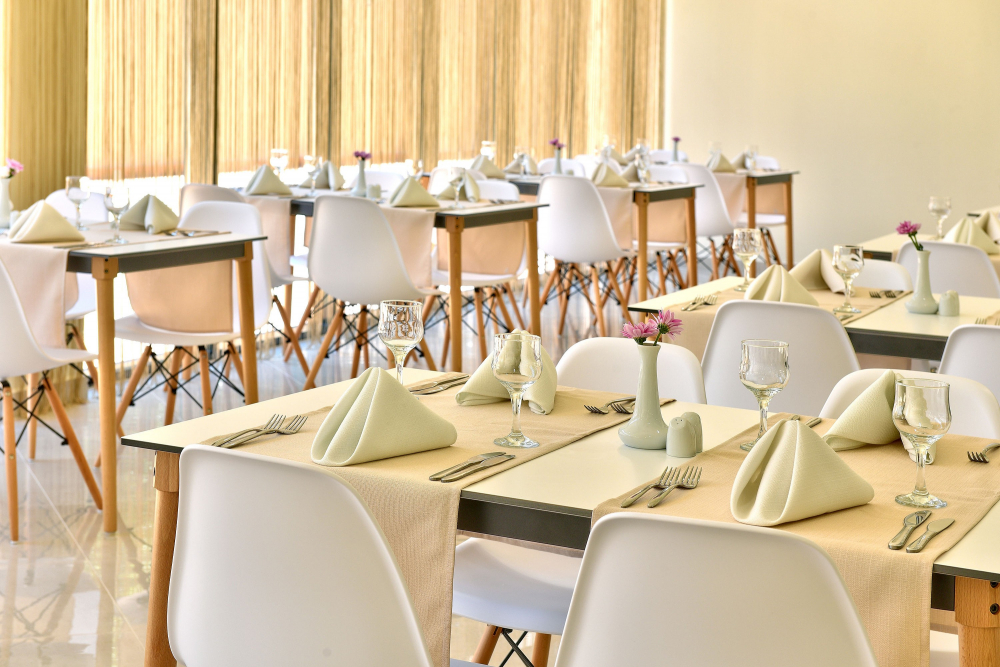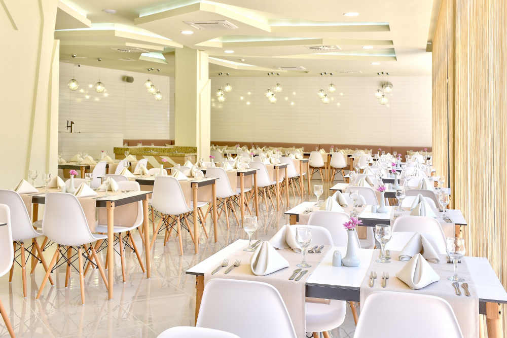 Обяд на бюфет : / 12:30 - 14:00 ч./ - разнообразни топли и студени ястия, разнообразни млечни продукти, сезонни плодове, богато разнообразие от ястия от българската и международната кухня. Напитки на бюфет с минерална вода, безалкохолни напитки, наливна бира и вино, кафе и чай.
