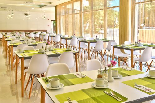Закуска на бюфет :/ 7:30 - 10:00 ч./ - разнообразни пресни плодове и зеленчуци, сирена, корнфлейкс, кроасани, палачинки, яйца, студени и топли напитки.