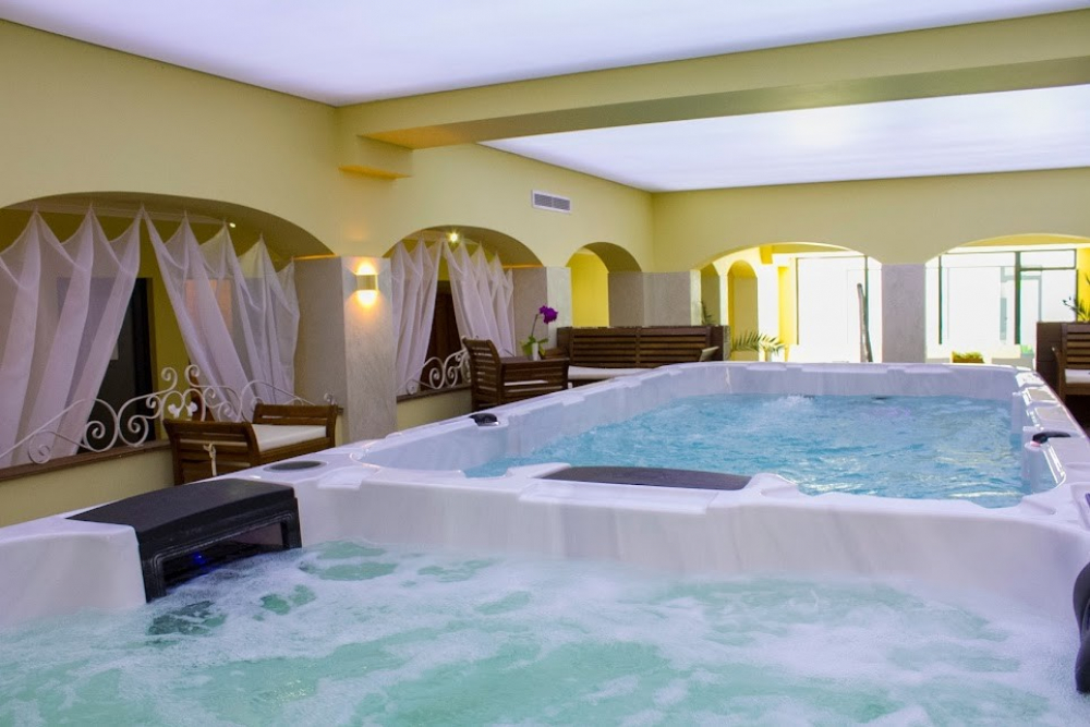 СПА център: 2 сауни, парна баня, приключенски душ, релакс зона, 2 джакузита (топли и студени) и професионална фитнес зала.