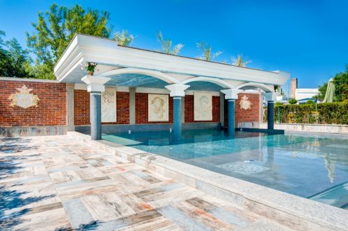 Външен басейн + релакс зона (плитък басейн с джакузи и шезлонги, с инфинити страна)