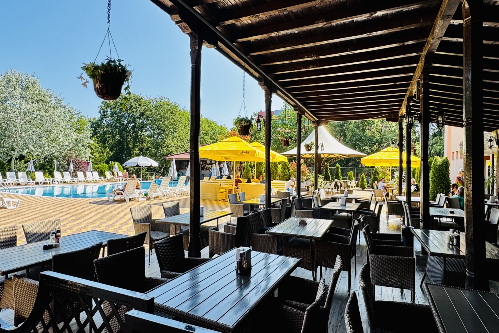 * По време на основните хранения на бара в основния ресторант се предлагат български алкохолни и безалкохолни напитки, които включват:
