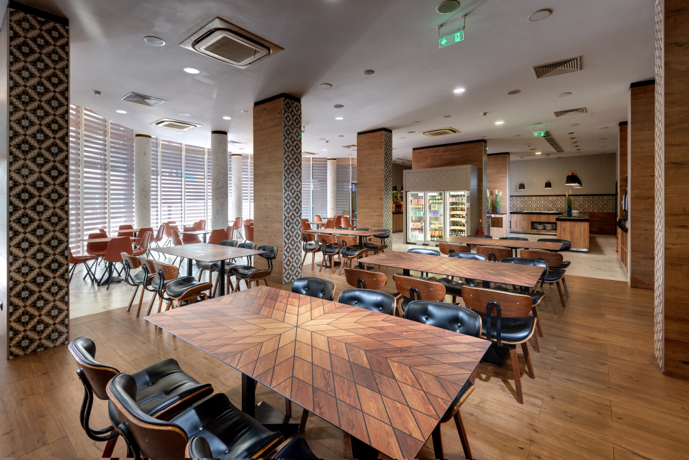 Обяд на бюфет: 12:30-14:00 ч. - селекция от свежи салати и супи, богато разнообразие от български и интернационални ястия, вегетариански и месни основни ястия, паста, тестени изделия, десерти и др.