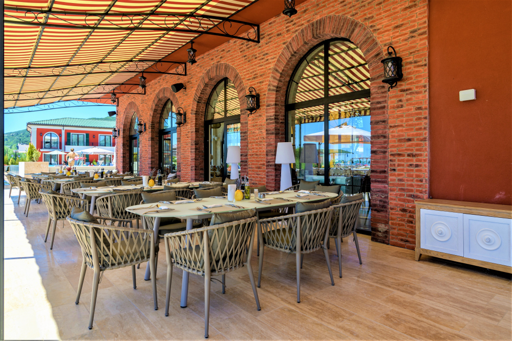 Хотелът предлага по-висок стандарт на обслужване, като предоставя на клиентите си уникален престой във вили с възможност за хранене по избор в Италианския ресторант "Ватикан":