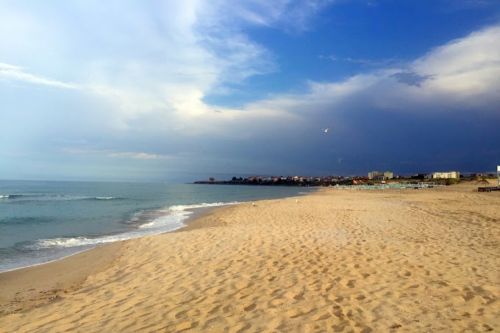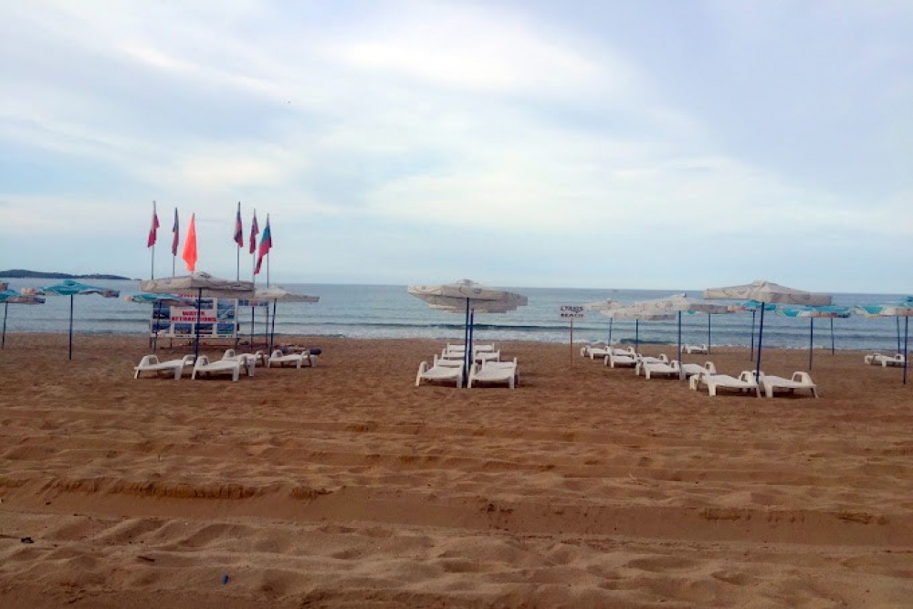 Чадъри и шезлонги на ПЛАЖ Ориос, който се намира на Северния Плаж в Приморско (според наличността)