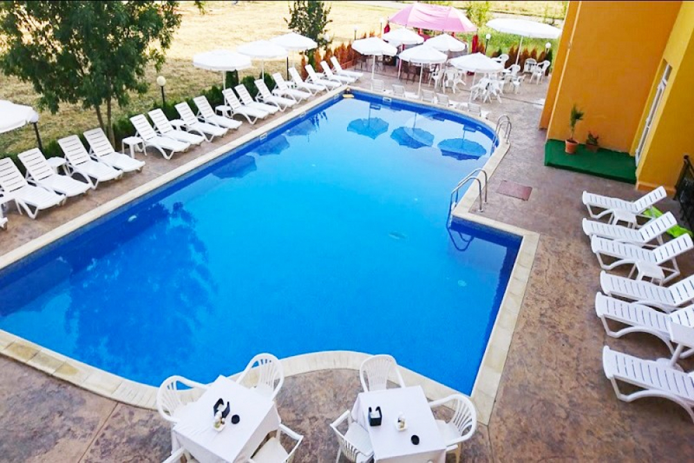 Напитки на бар басейна от 10:00 до 22:00 топли напитки, наливни безалкохолни напитки от машина, наливна бира, наливно вино и български алкохолни напитки включени